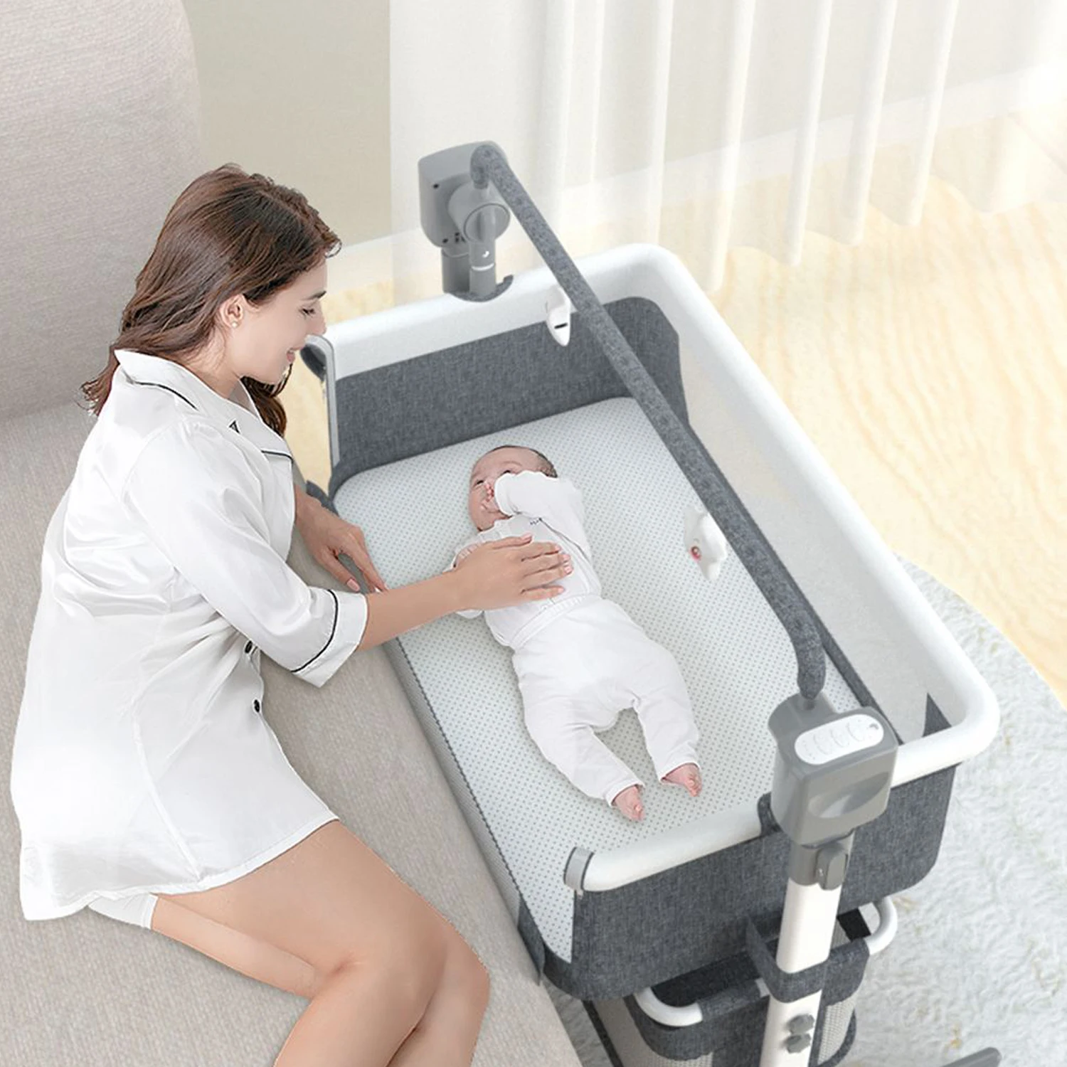 Control everything with the remote control or built-in panel, and soothe your baby with Bluetooth music accompaniment for a calm sleep.